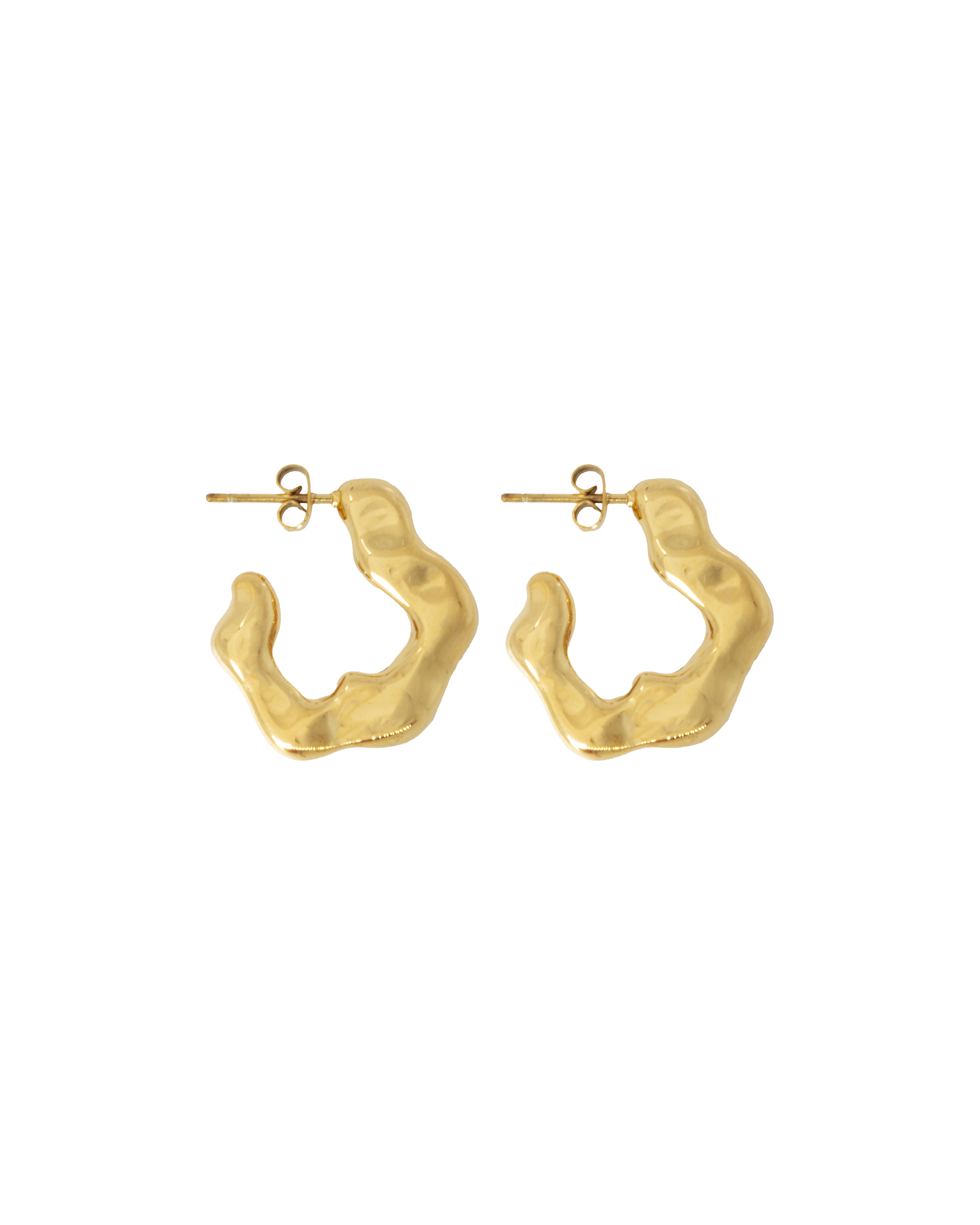 Ohrringe aus goldfarbenem Edelstahl in einem modernen, wellenförmigen Design.