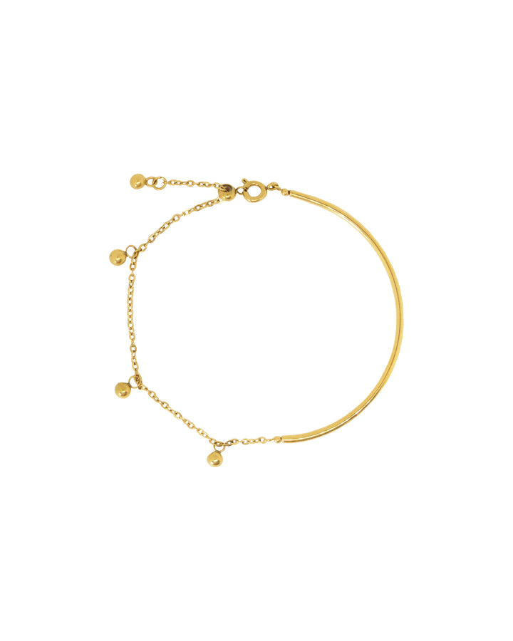 Trendy armband van stainless steel in de kleur goud, afgewerkt met verfijnde hangende balletjes. Duurzaam, verkleurt niet en perfect te combineren met andere sieraden.