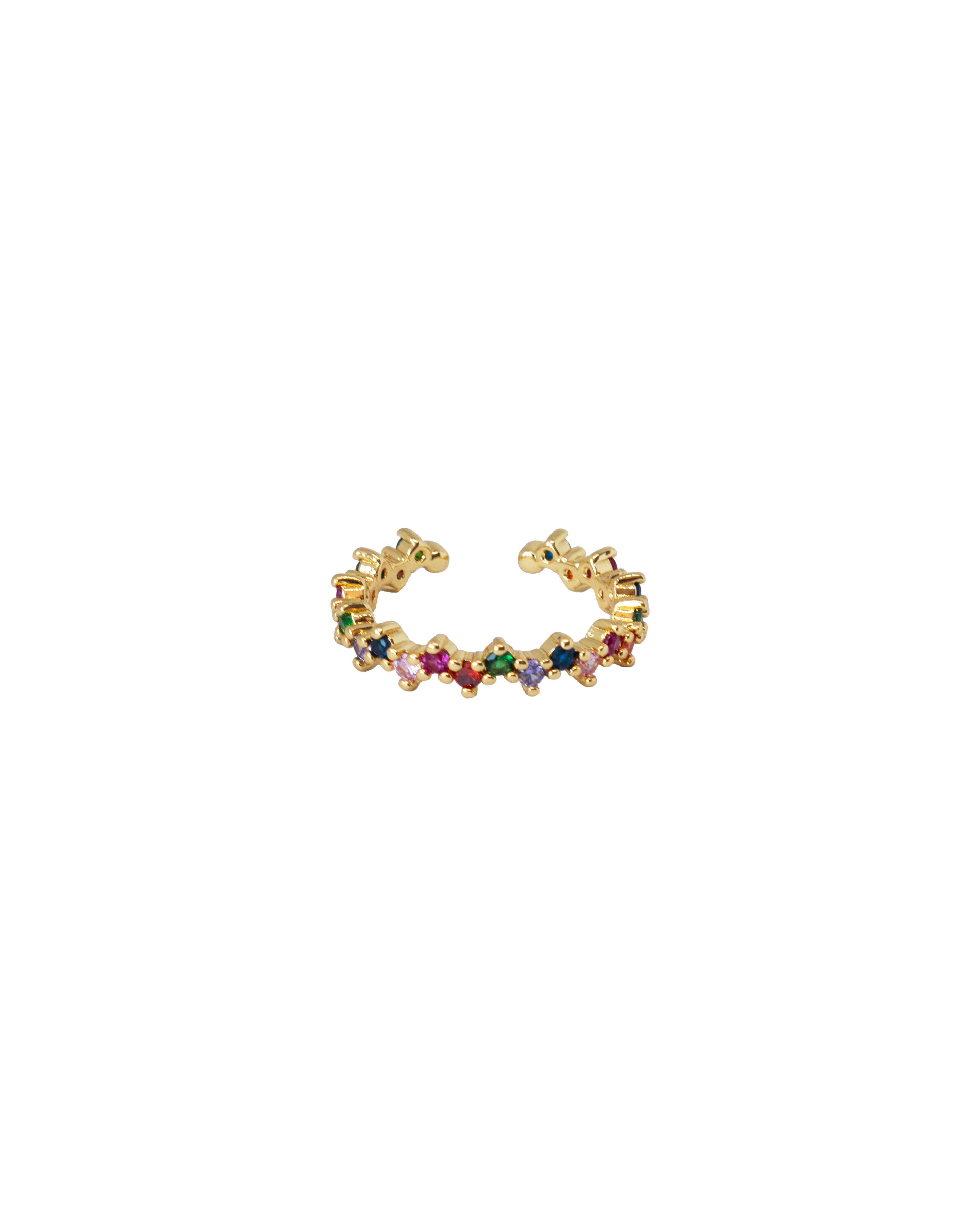 Verstelbaar ring van goudkleurig stainless steel, afgewerkt met speelse multicolor accenten.