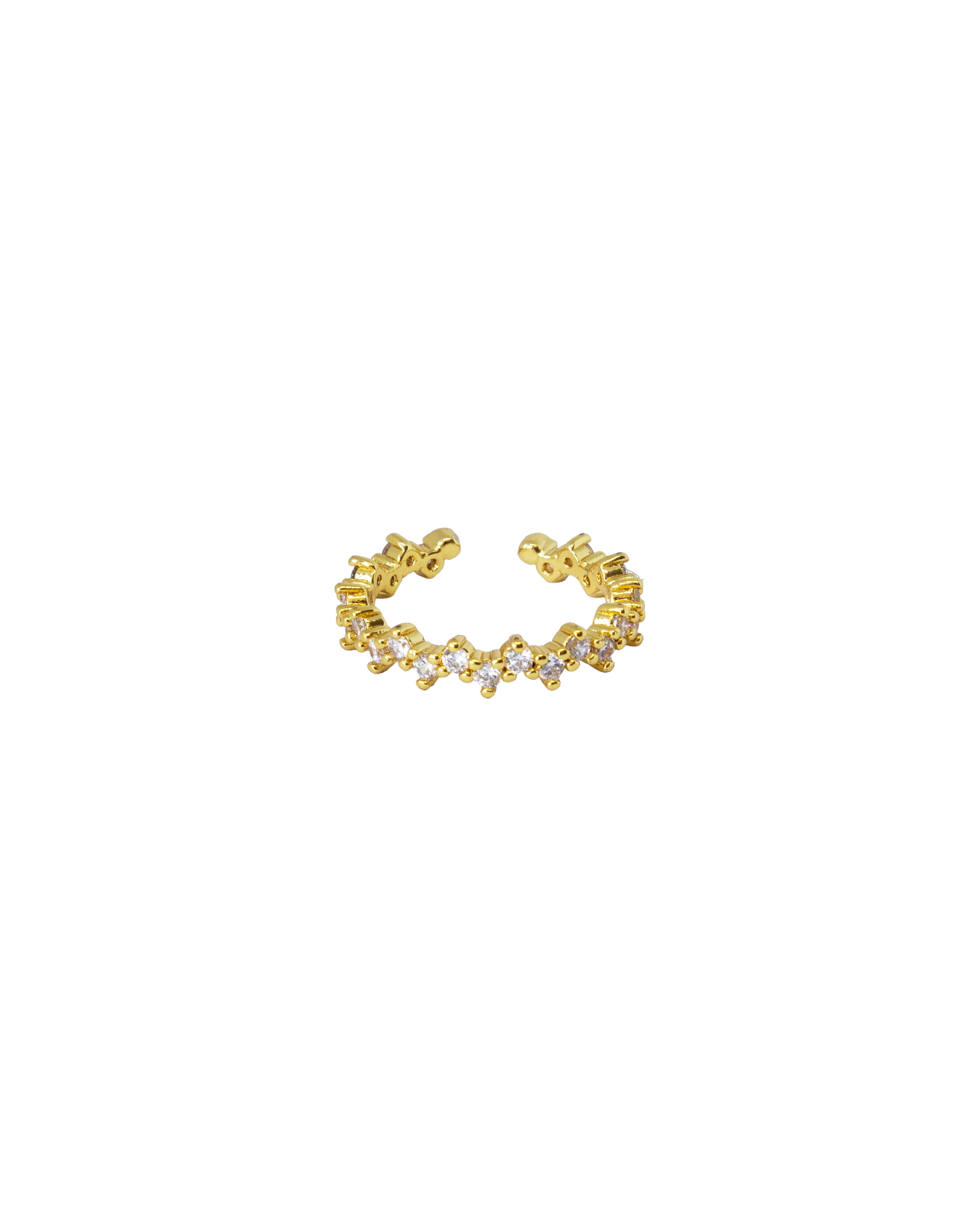 Goudkleurige verstelbare ring in stainless steel, met doorzichtige steentjes.