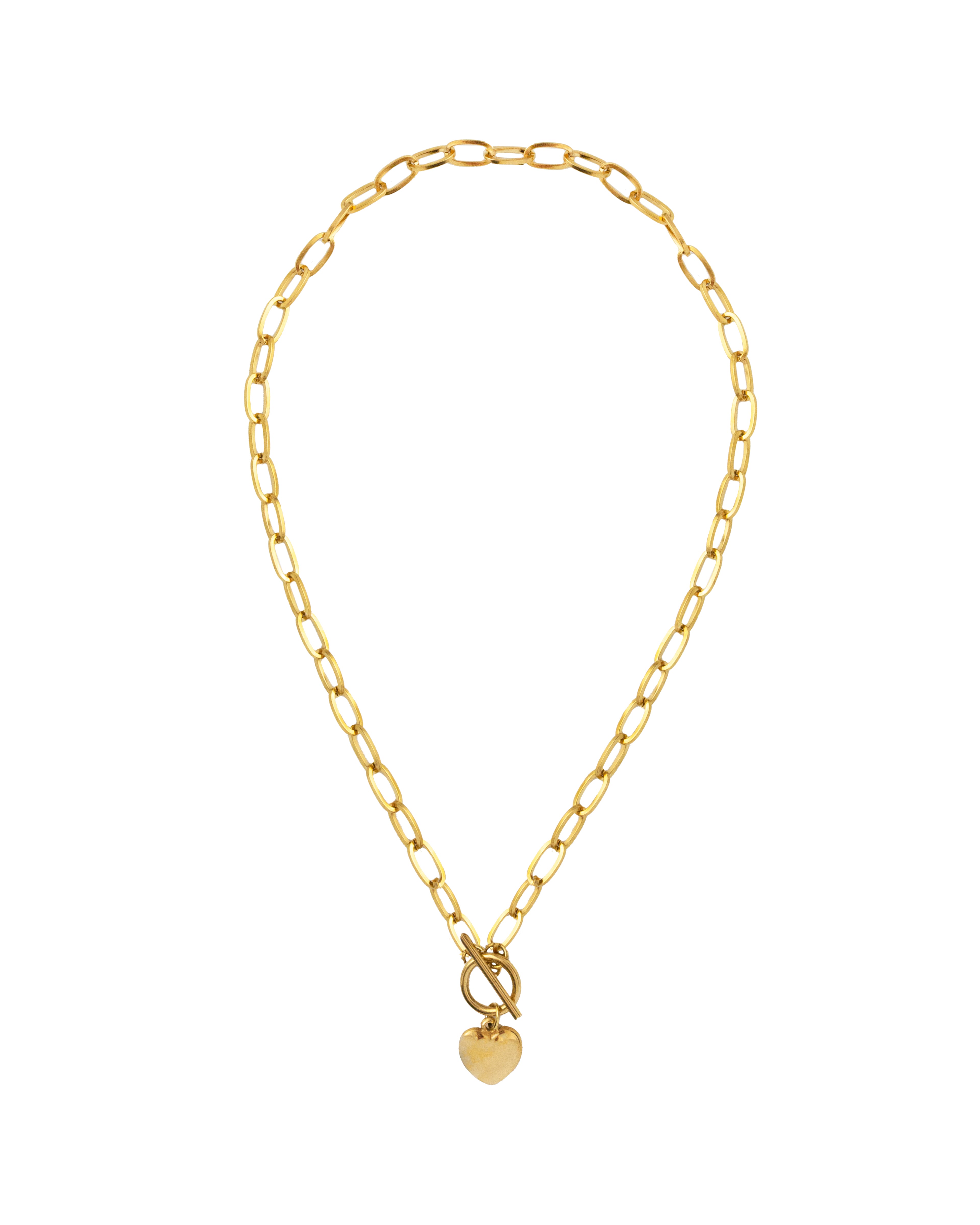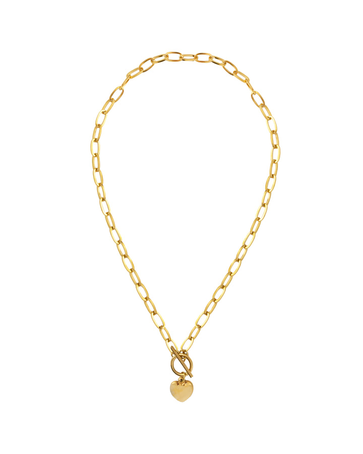 Ketting van goudkleurig stainless steel, afgewerkt met een verfijnde hartjes charm.