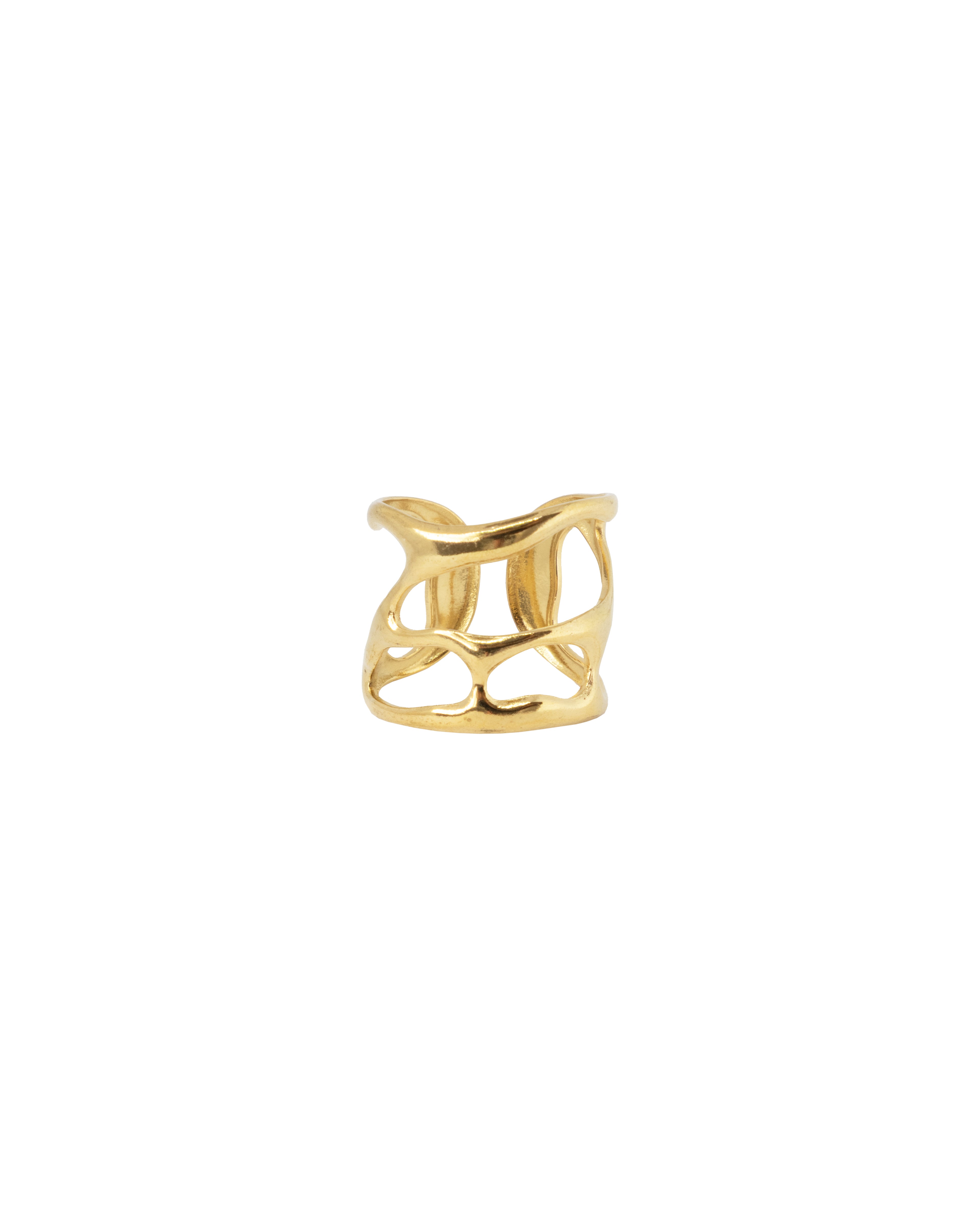 Ring van goudkleurig stainless steel in een elegant design. Verstelbaar, duurzaam en verkleurt niet, perfect voor elke gelegenheid.