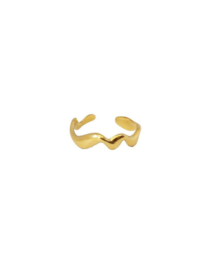 Ring van goudkleurig stainless steel in een elegant design. Verstelbaar, duurzaam en verkleurt niet, perfect voor elke gelegenheid.