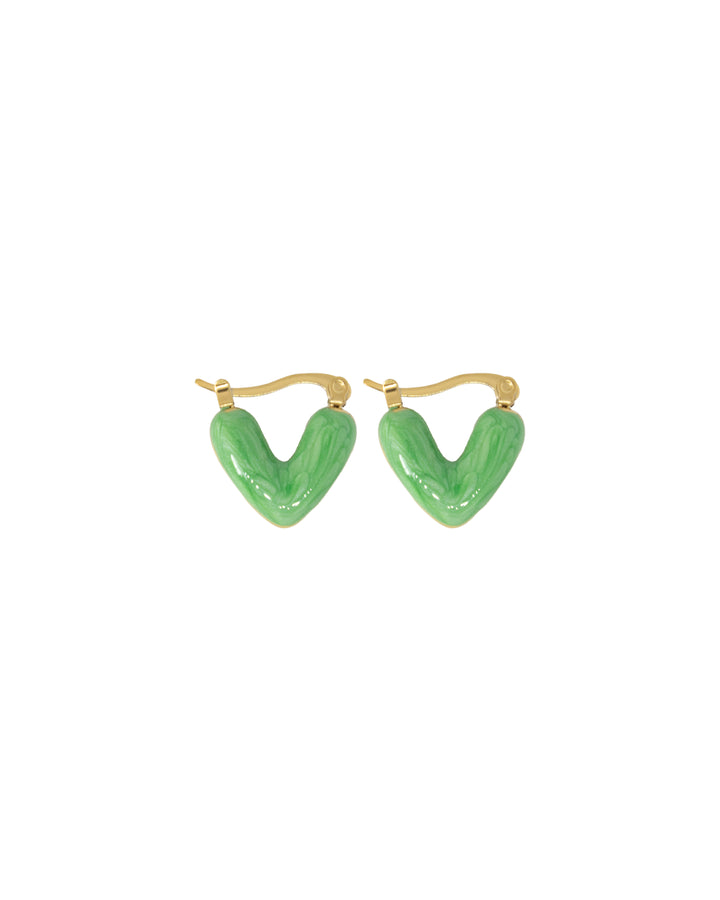 Oorbellen van stainless steel in een speelse hartjesvorm, uitgevoerd in fris groen.