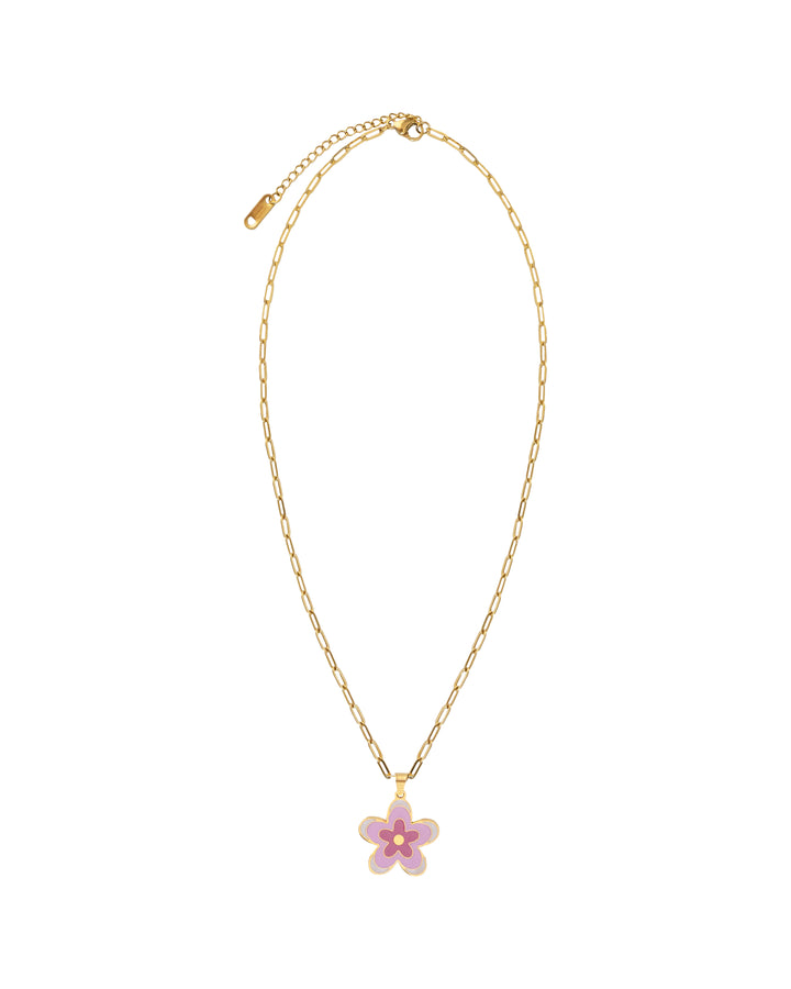 Ketting van goudkleurig stainless steel, afgewerkt met een charmante roze bloem.