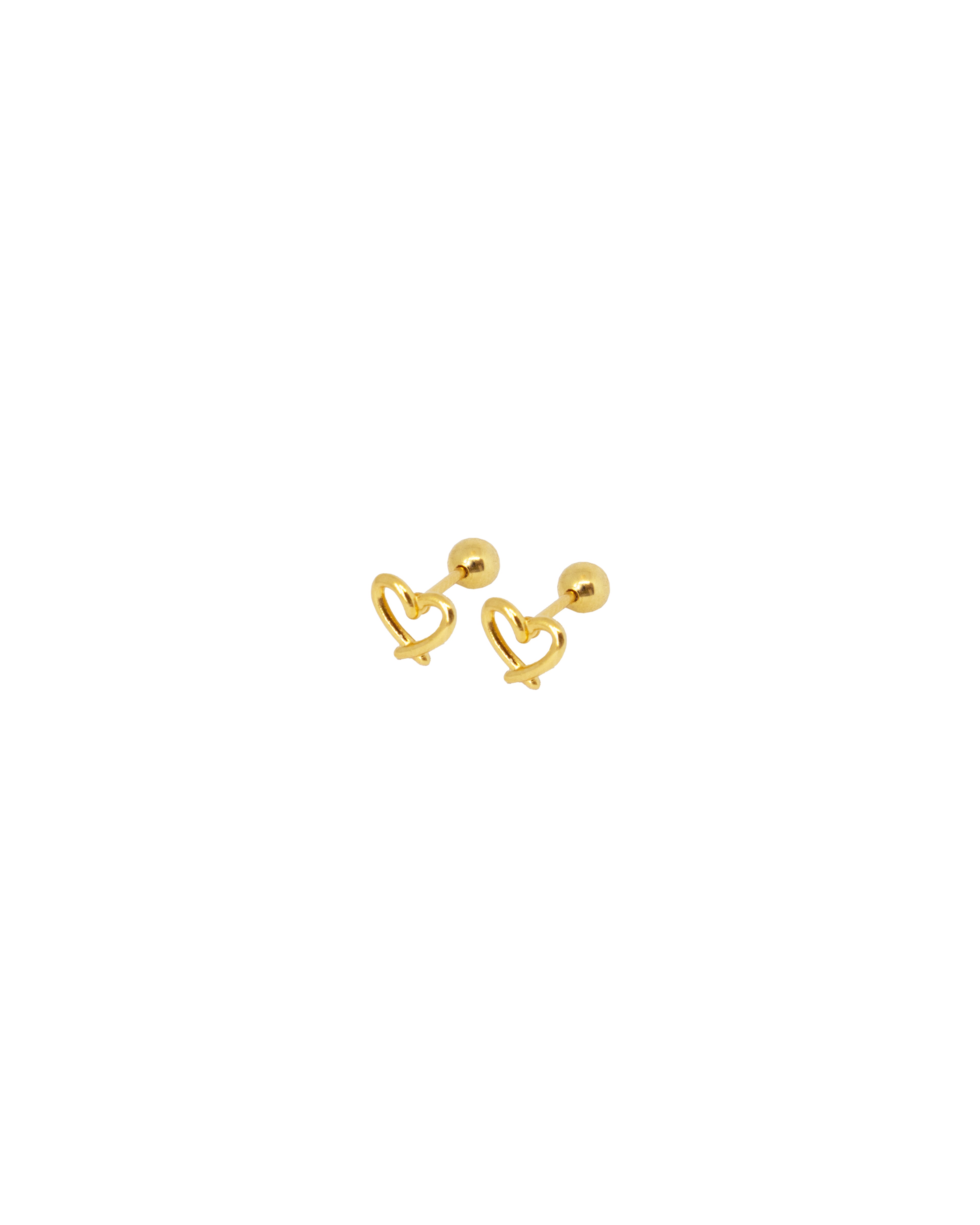 Oorbellen in de vorm van kleine hartjes, gemaakt van goudkleurig stainless steel. Duurzaam, verkleuren niet en perfect voor een subtiele, romantische look.