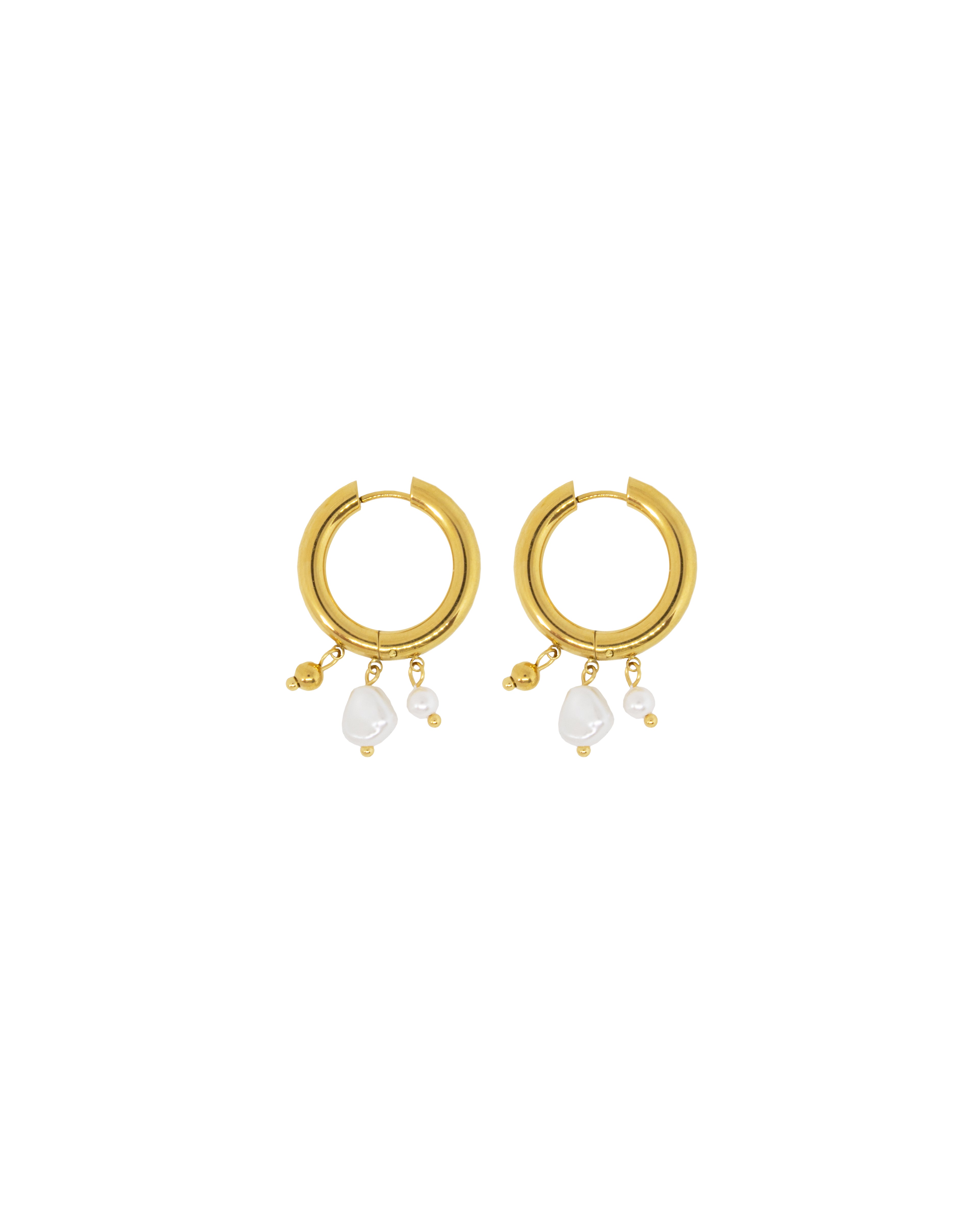 Stijlvolle oorbellen van goudkleurig stainless steel, verfijnd met elegante imitatieparels.