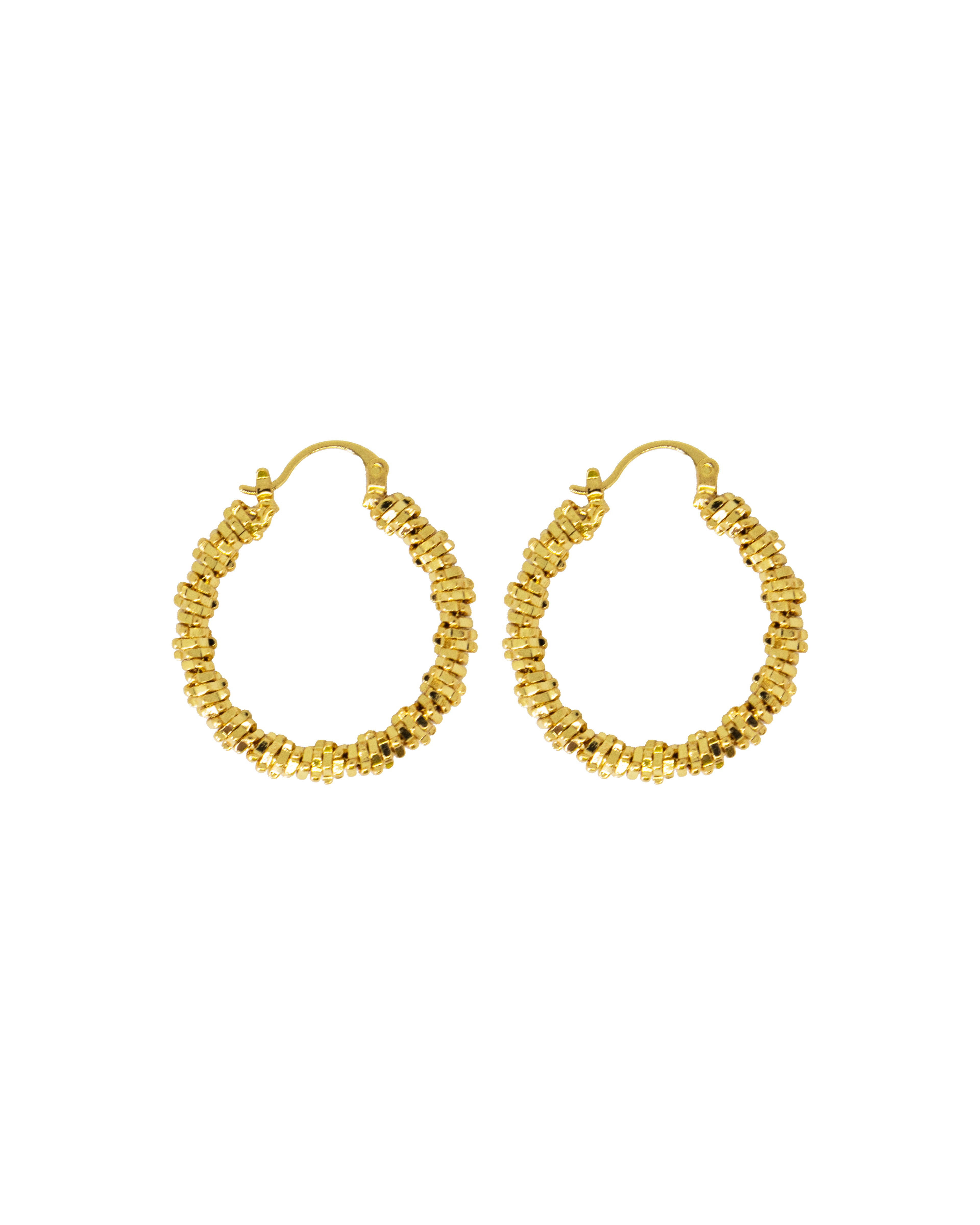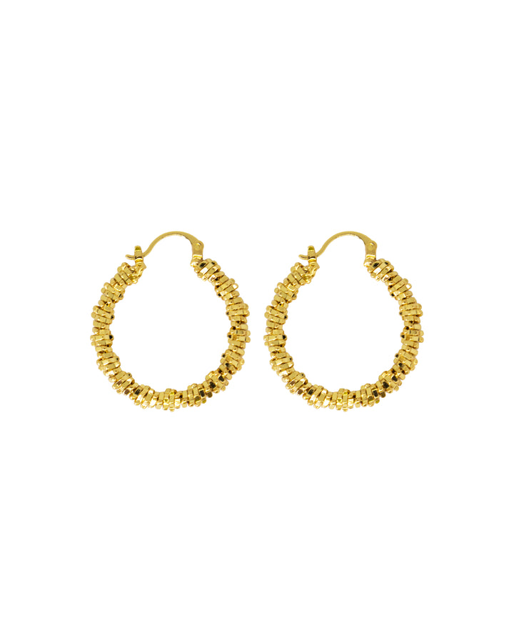 Stijlvolle oorbellen van goudkleurig stainless steel met een sprankelend effect.