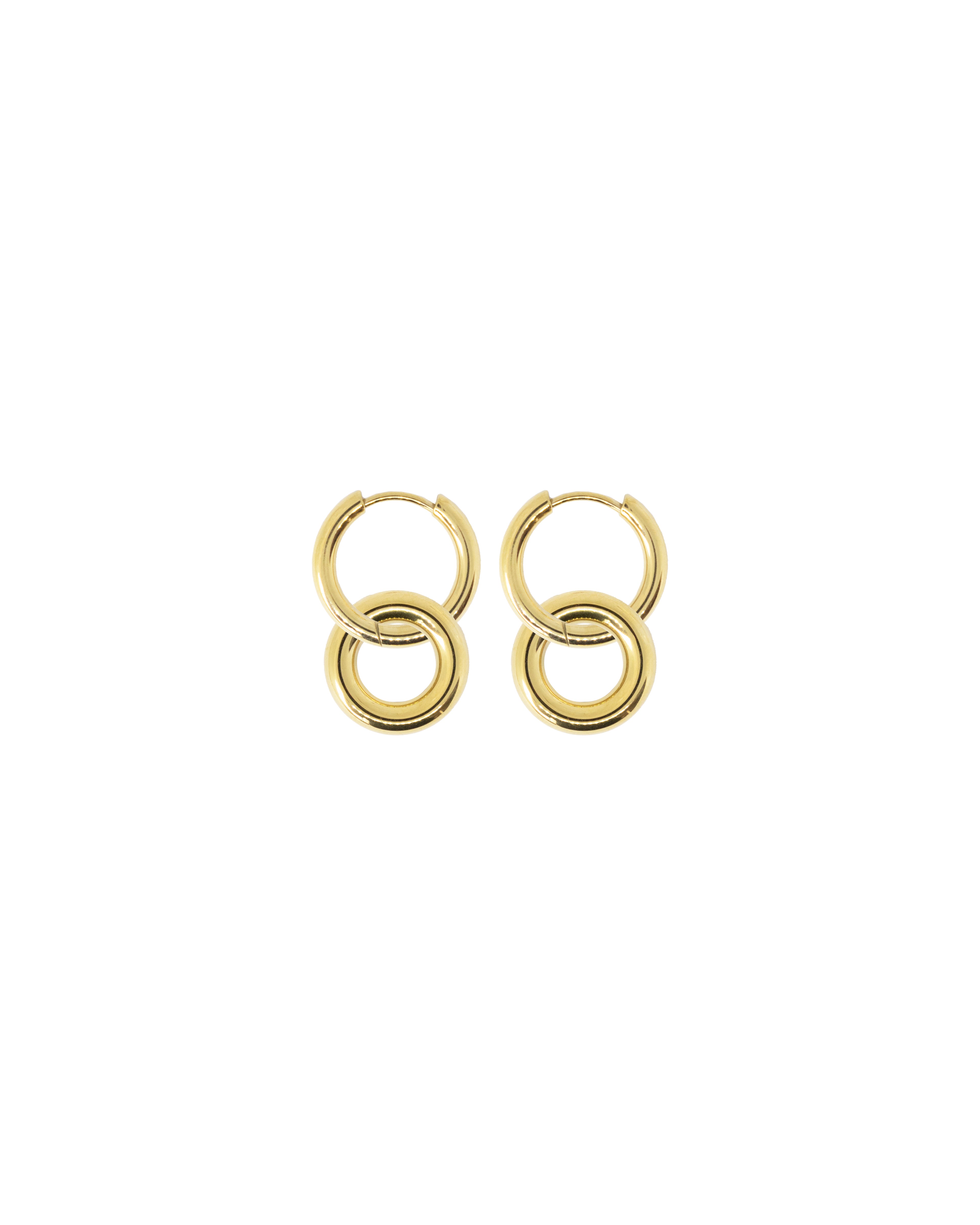 Oorbellen van goudkleurig stainless steel, ontworpen met een stijlvol dubbel ringdetail.